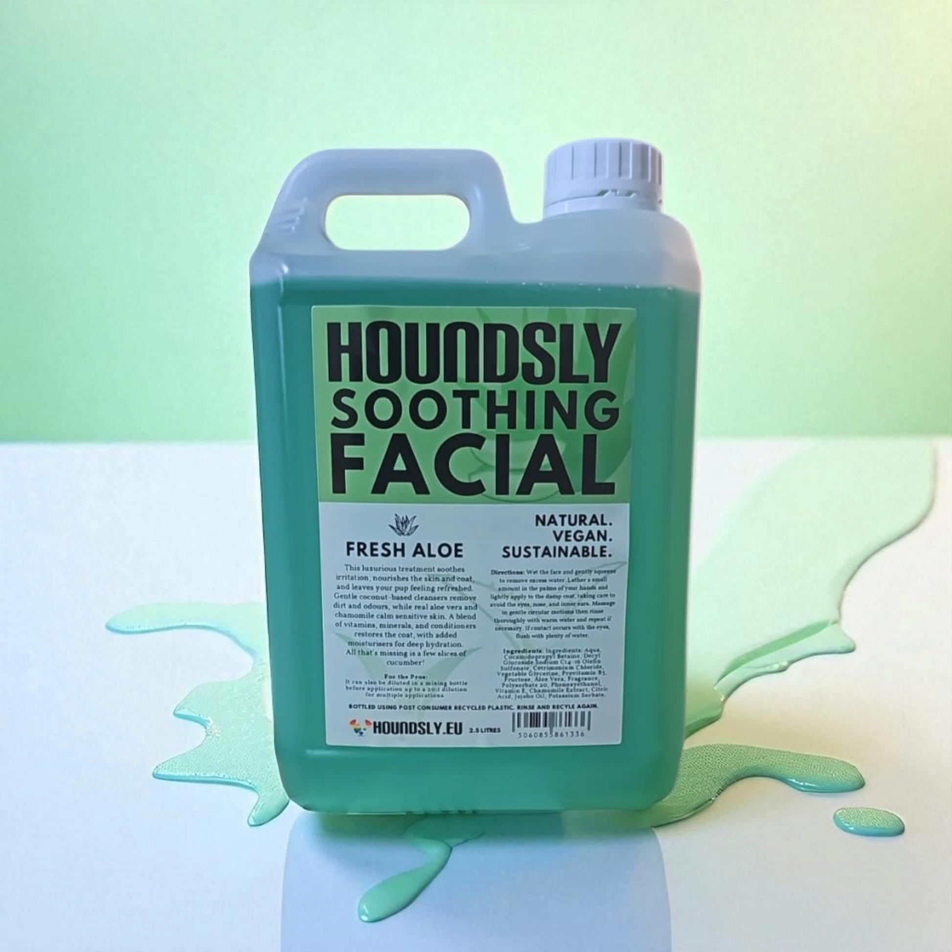 Our Aloe facial is a facial treatment to help sooth irritated faces, nourish both their skin and coat to leave them looking and feeling refreshed!. It’s packed full of gentle coconut based cleansers to get the coat fully clean and deodorised, real aloe Vera and chamomile extracts to help soothe skin, a variety of vitamins, minerals and conditioners to leave their coat nourished & mulitiple moisturising agents to hydrate their skin. All that’s missing from this treatment is a couple of slices of cucumber!
